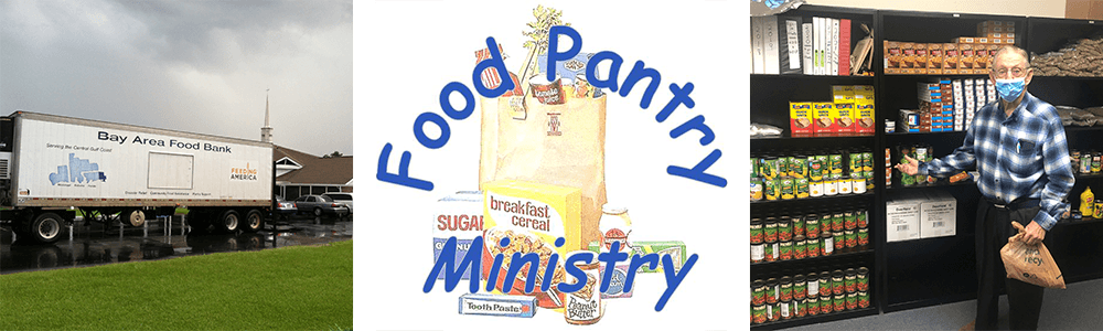 Shepherd of the Bay Lutheran Church Food Pantry started about 8 years ago, and about 6 years ago joined what was then known as “Feeding the Gulf Coast”, but soon the name changed to “Feeding America”. In the beginning, about 30 families were served. It has grown since then and at times we feed up to 50+ families. A monthly required report to the USDA helps not only the Feed America Warehouse stock with donations from Publix, Rouse’s, Piggly Wiggly, Walmart (just to name a few), but it also helps Shepherd of the Bay to keep food in stock. There is paperwork to be completed by all who come to the food pantry, but since all we deal with is food assistance, the paperwork only asks for a name, address, phone number, and the breakdown of who is in the family (such as how many are in the family unit, how many are over 60 and above, how many are 18 and under). We do not ask for proof of income and do not refuse anyone asking for food. We are an ”Equal Opportunity Provider” and refuse no one. The Food Pantry is open the second and fourth Tuesday of each month from 9 – 11 am.